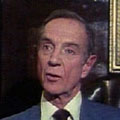 髪の毛の色と髪型が違うので、ちょっと分かりにくいかもしれませんが、「謎の円盤UFO」のストレイカー最高長官こと、エド・ビショップです。本エピソードには、素の(?)顔で出演、英国のVIPハービンジャー博士を演じています。「謎の円盤UFO」の頃より、お年を召して、なかなか貫禄が出ています。ストレイカーのイメージを完全払拭した演技は、本エピソードのみどころのひとつです。 |